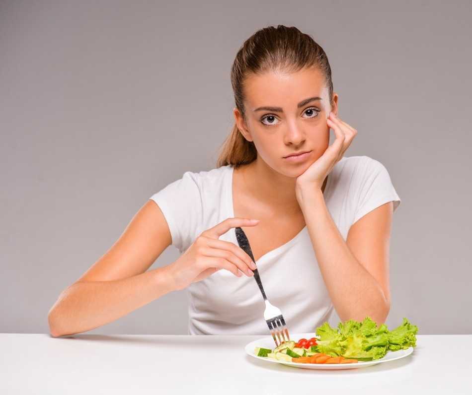 грустная девушка без аппетита с болезнью анорексия нуждается в лечении лимонником