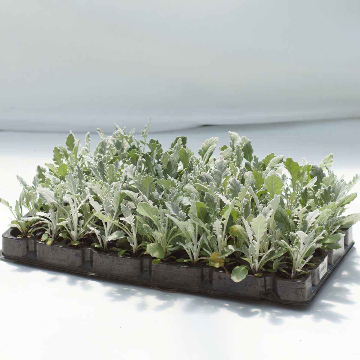 Также носит название цинерария серебристая, является многолетней вечнозеленой кустарниковой культурой, высотой до 50 см. Любителей цветоводства привлекает необычная окраска листьев и их ажурная форма. Растение не имеет пышного цветения, его ценят как декоративно-лиственный вид.