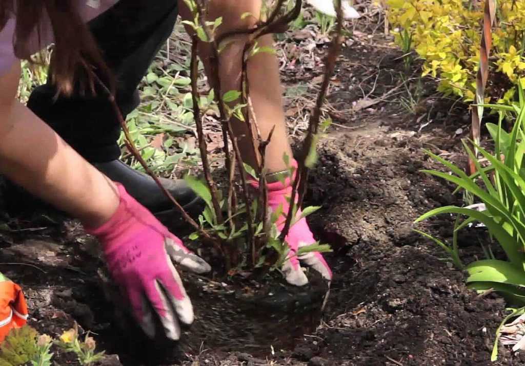 Ямку для посадки лучше делать пошире, не менее 75 сантиметров и поглубже – примерно 55 сантиметров. В нее нужно добавить минеральные или органические удобрения, насыпать плодородной земли и слегка увлажнить ее. Как только жидкость полностью впитается, нужно засыпать оставшийся грунт, стараясь не заглубить корневую шейку, которая обязательно должна оставаться вровень с поверхностью. Если же планируется высадить сразу несколько саженцев, то расстояние между ними должно составлять не менее 1,5 метра для высоких кустов и 75 сантиметров для карликовых.