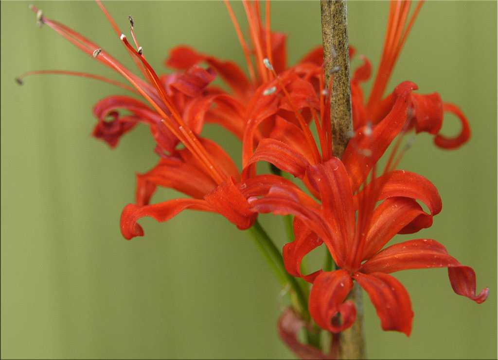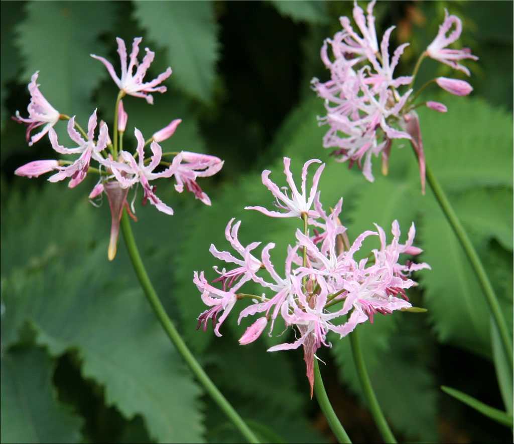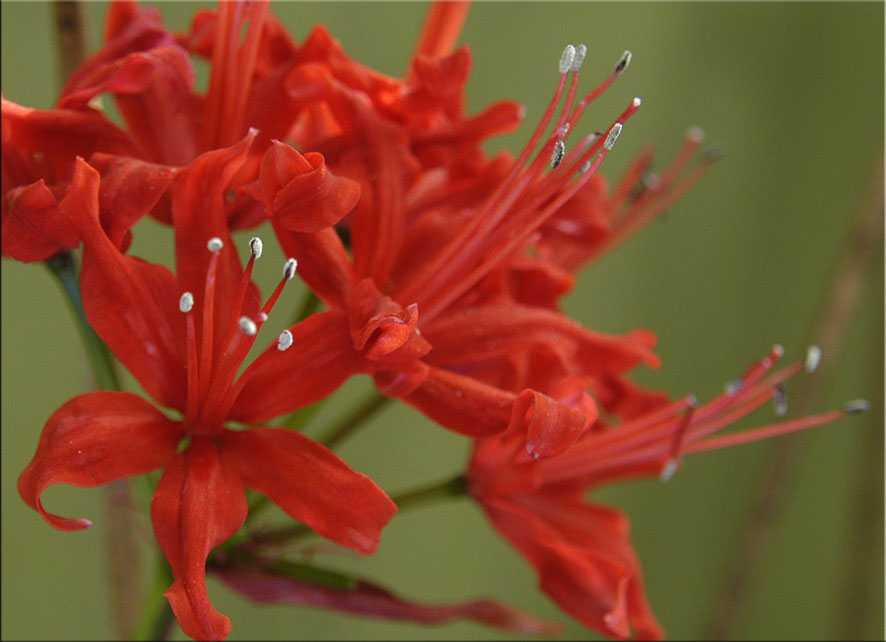 Этот вид нерине имеет белые, оранжевые красные цветки с узкими скрученными лепестками на верхушке цветоноса. От него выведено много красивых гибридов. Ниже некоторые из них.