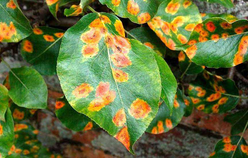 - Ржавчина. Данное заболевание поражает стебля и листья. Признаком заболевания являются скопления оранжевых или бурых спор на нижней стороне пластинки, желтые овальные или круглые пятна – на верхней. Затем пятна превращаются в коричневые полоски и листья опадают. Устраняют заболевание химическими препаратами: «Топаз», «Абига-Пик», «Бактофит», «Фитоспорин-С».