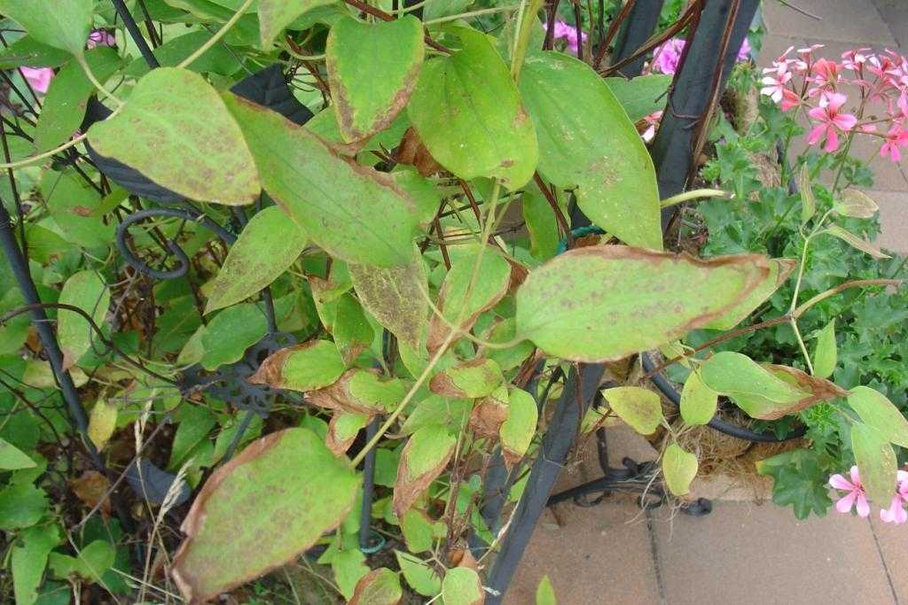 В случае выявления болезни все пораженные побеги срезают. Сам куст хорошо поливают раствором марганцовки. Не прибегнув к методам лечения, клематис может умереть.