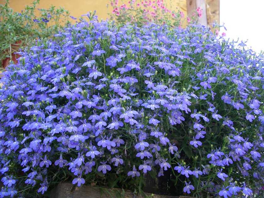 С какими цветами можно сочетать лобелию в кашпо и на клумбе