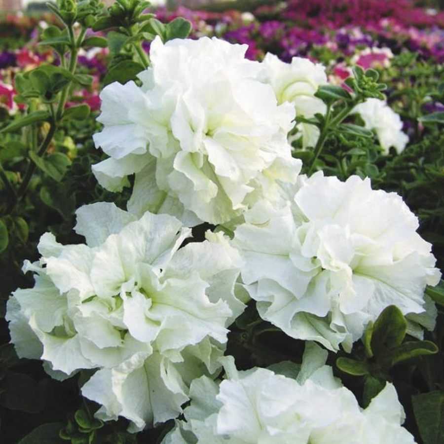 - Белоснежная россыпь крупных махровых цветков гибридного сорта Соната F1.