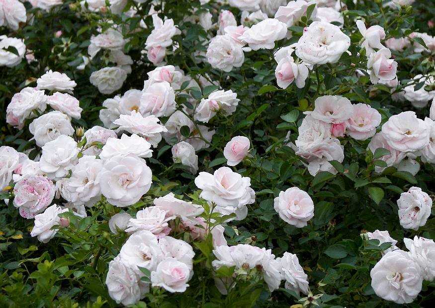 В конце минувшего века звездой среди белых роз считалась ‘Polarstern’ (Tantau, 1982), но она, к сожалению, слишком сильно подвержена чёрной пятнистости. Уже более полувека восхищает садовую публику и сорт ‘Schneewittchen’ (синонимы ‘Iceberg’, ‘Fee de Neiges’, W. Kordes’ Söhne, 1958). Его белые махровые цветки средней величины имеют лёгкий аромат. Энергичный рост, обильное цветение, глянцевая светло-зелёная листва и неприхотливость в культуре обеспечили этой замечательной розе такую широкую известность в мире, какой за всю историю розоводства добивались лишь немногие сорта. В 1983 году она была введена в Зал славы Всемирной федерации сообществ розоводов и получила титул «Любимая роза мира».