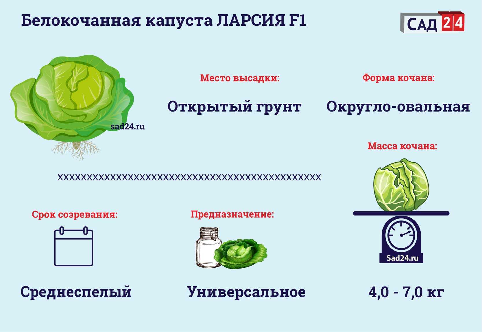 Если высадить рядом с капустой лук, сельдерей, базилик, бархатцы, укроп, то количество вредителей снизится.Мнение экспертаВалентина РедкоГлавный редактор Репка.онлайн. Опытный дачник и садовод.Капуста Ларсия F1 известна своим голландским качеством. Селекционеры облегчили ее выращивание, наделив гибрид устойчивостью к болезням и выносливостью. Несмотря на позднее созревание, гибрид остается популярным, ведь поздние сорта – самые лучшие для зимних заготовок.Общая оценка сорта {{$data | json}} –>