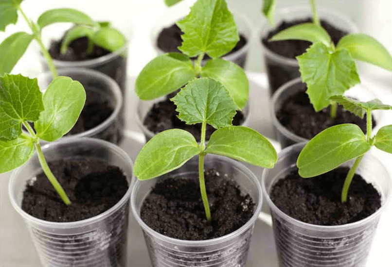 Для рассады берут специальные покупные или одноразовые прозрачные пластиковые стаканчики. У представителей тыквенных очень чувствительные тонкие корешки, повреждение которых может привести к гибели растения. Поэтому выращивание рассады в единой емкости с последующей пикировкой нежелательно. На дне стаканчика делают дырку.