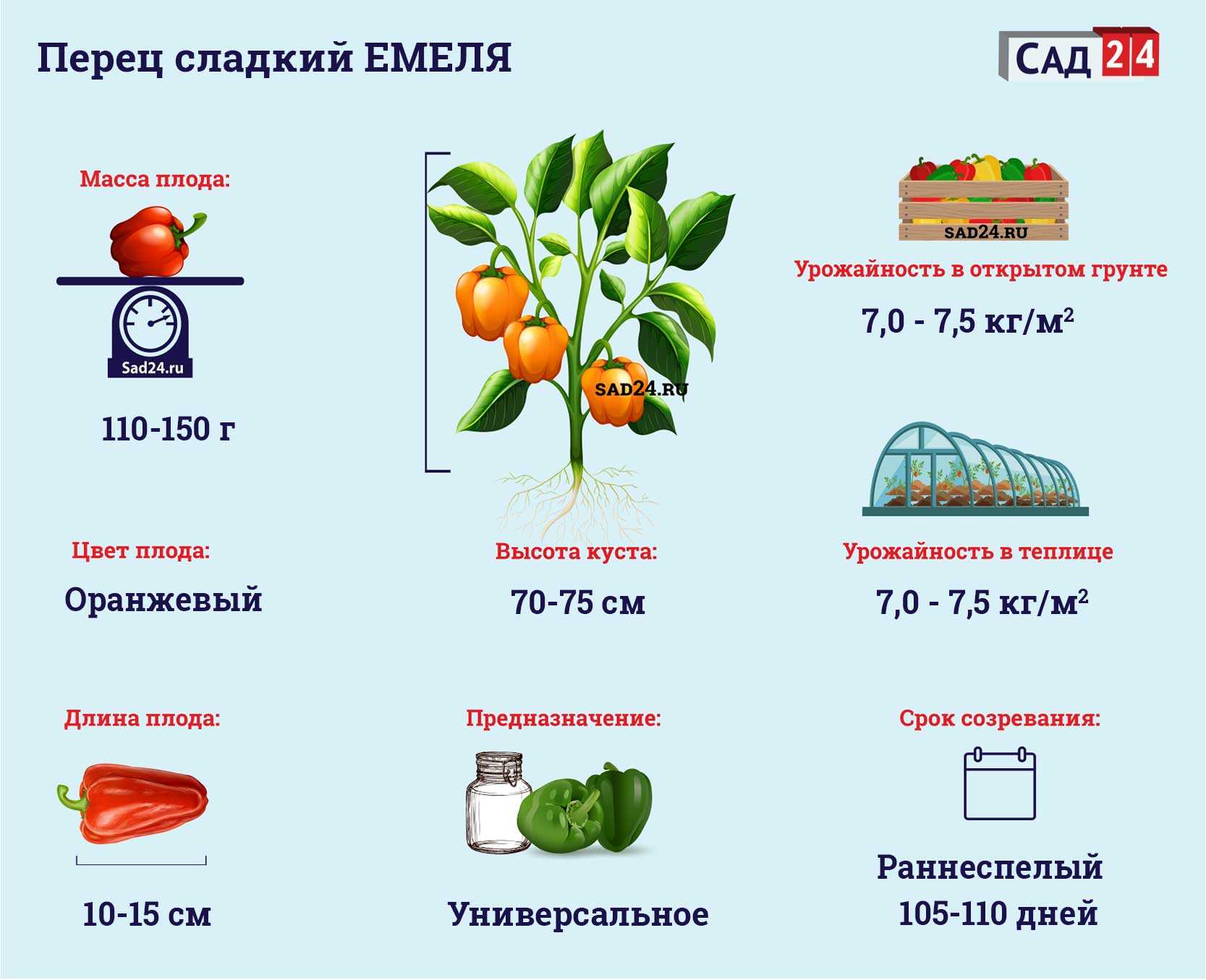 - Благодаря яркой окраске перец Емеля выделяется на грядках и торговых полках.