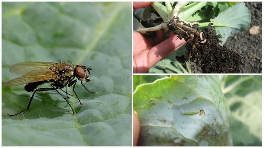 Куколки вредителя зимуют в грунте. Просыпаются, когда установится теплая погода, прогреется почва. В прикорневой зоне капусты мухи откладывают яйца, если кустики не окучивают. На гладком стебле, около корня, скапливаются светло-коричневые личинки. Подземная часть культуры загнивает, саженцы перестают расти, засыхают. Окраска листьев меняется на фиолетовую.