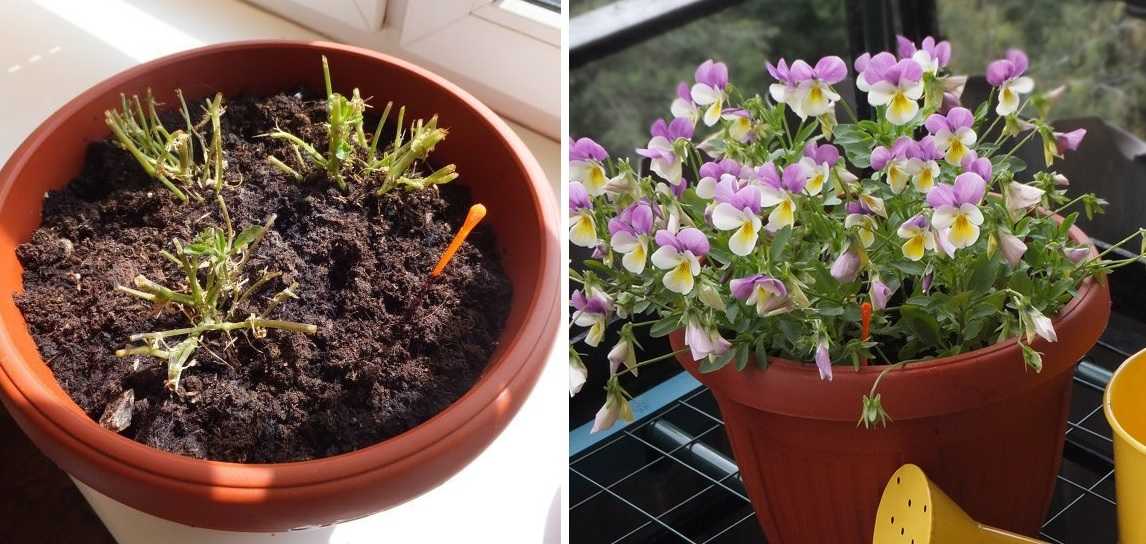 Многолетние сорта виолы со временем разрастаются, цветов появляется меньше и они меньшего размера. Для омоложения куста необходимо нарезать черенки и пересадить их в заранее подготовленные бороздки или лунки. Они должны быть в тени и с достаточной влажности. Для размножения срезают верхушку побега с 3 узлами. Черенки заглубляют в почву на 5 мм и укрывают плёнкой или стеклом.