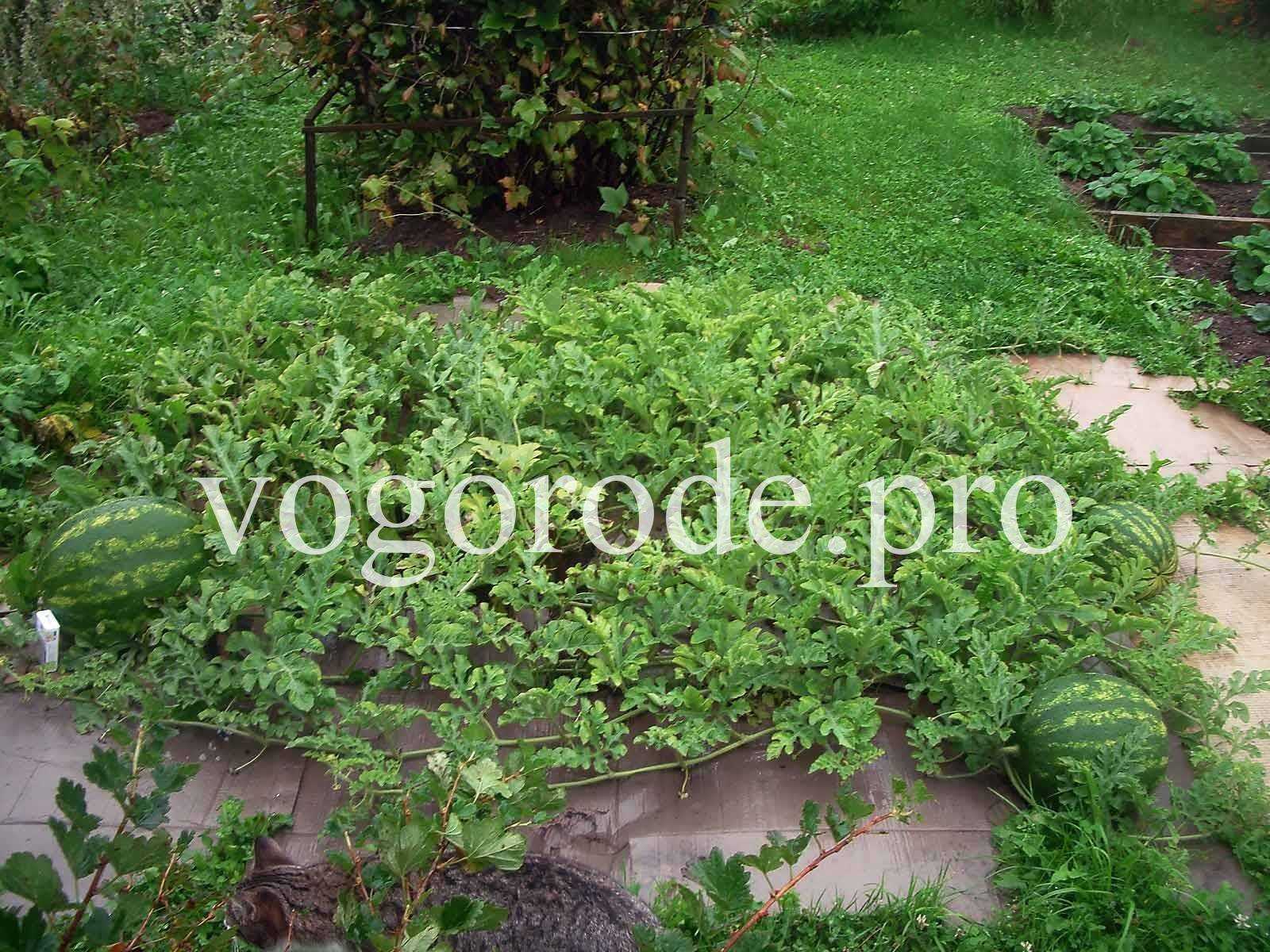 Площадь занятая одним привитым арбузом.В разные годы ботва у арбуза растет по-разному.