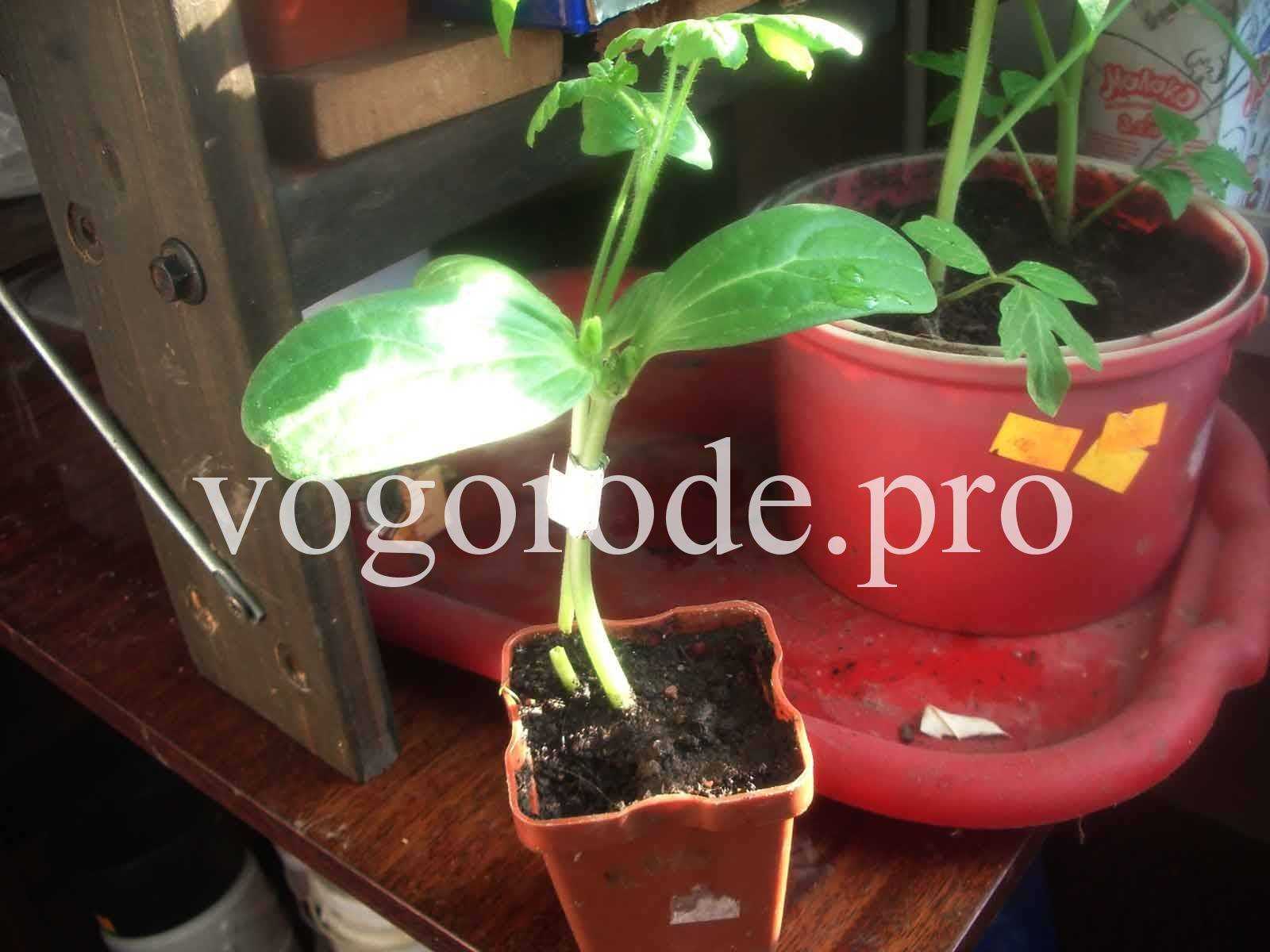 После того, как сеянцы укоренятся можно приступать непосредственно к прививке огурца.