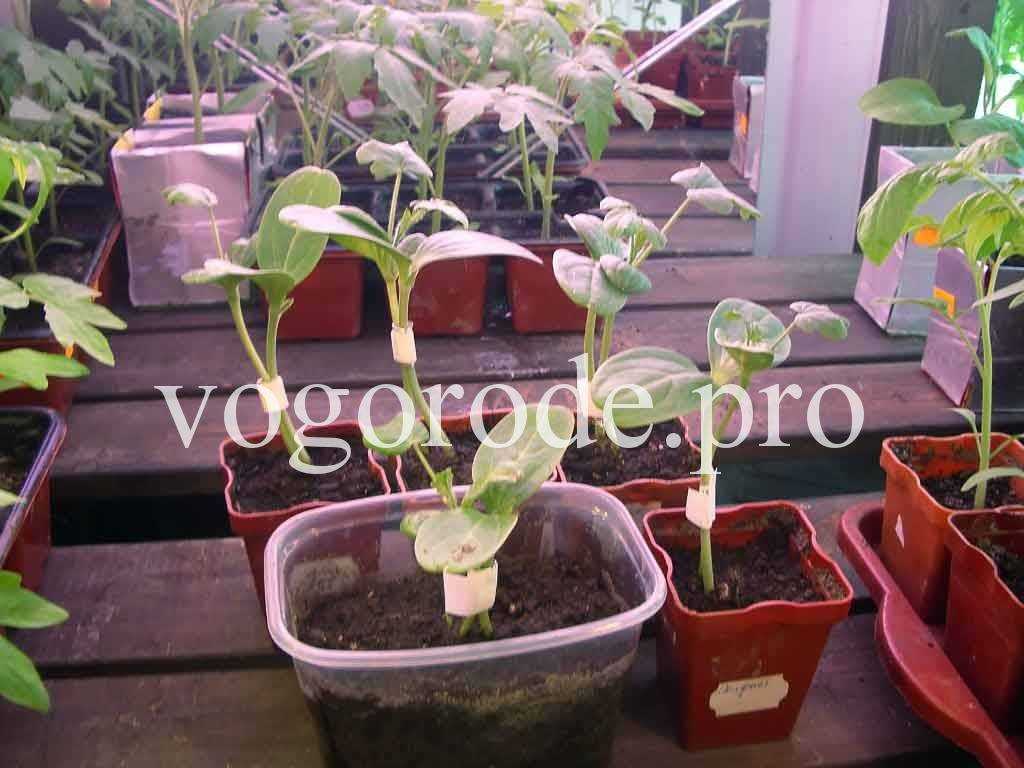 Сеянцы для прививки выращивают в стаканах объёмом 200 мл. Первым высевают арбуз, так как у него всходы появляются дольше. Через 3-5 дней сеют лагенарию. Прививку выполняют после появления 2-3 настоящих листов.