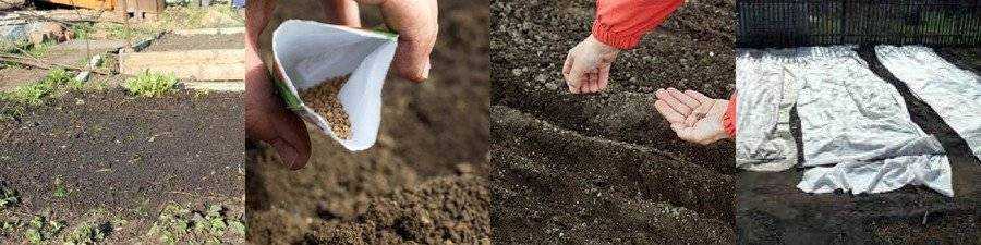 Рисунок 2. Подготовка грядки и посев в открытый грунт