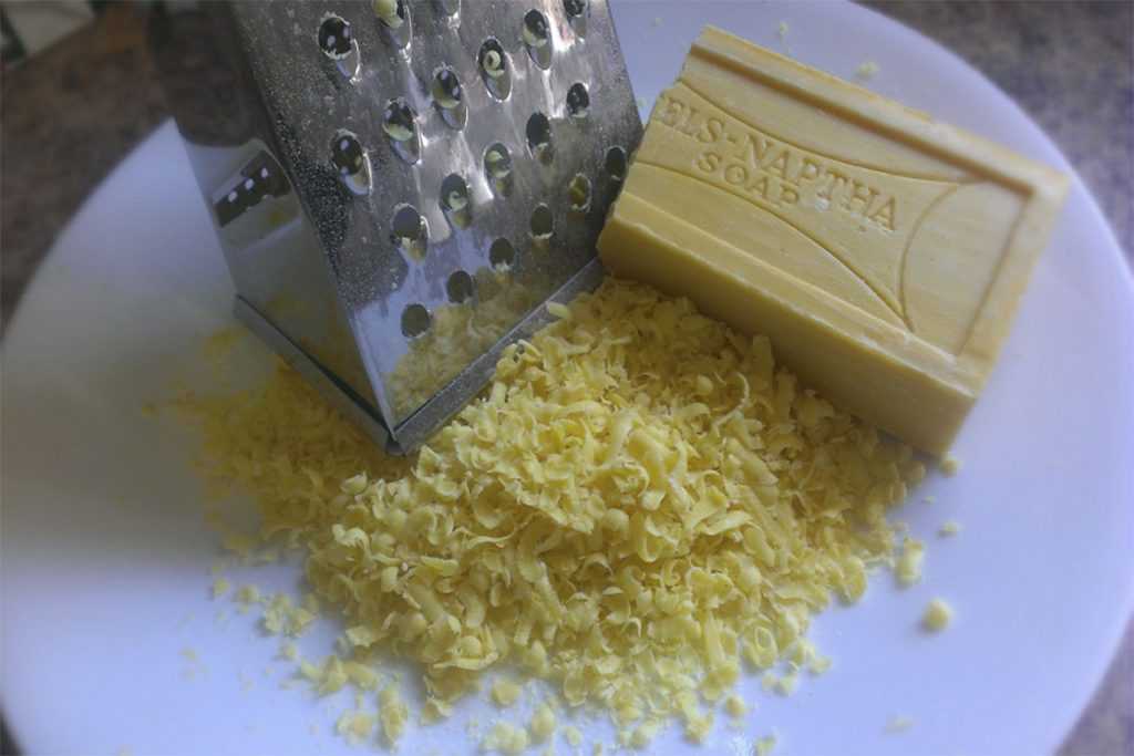 - дегтярное мыло – брусок растворяют в 10 литрах воды;