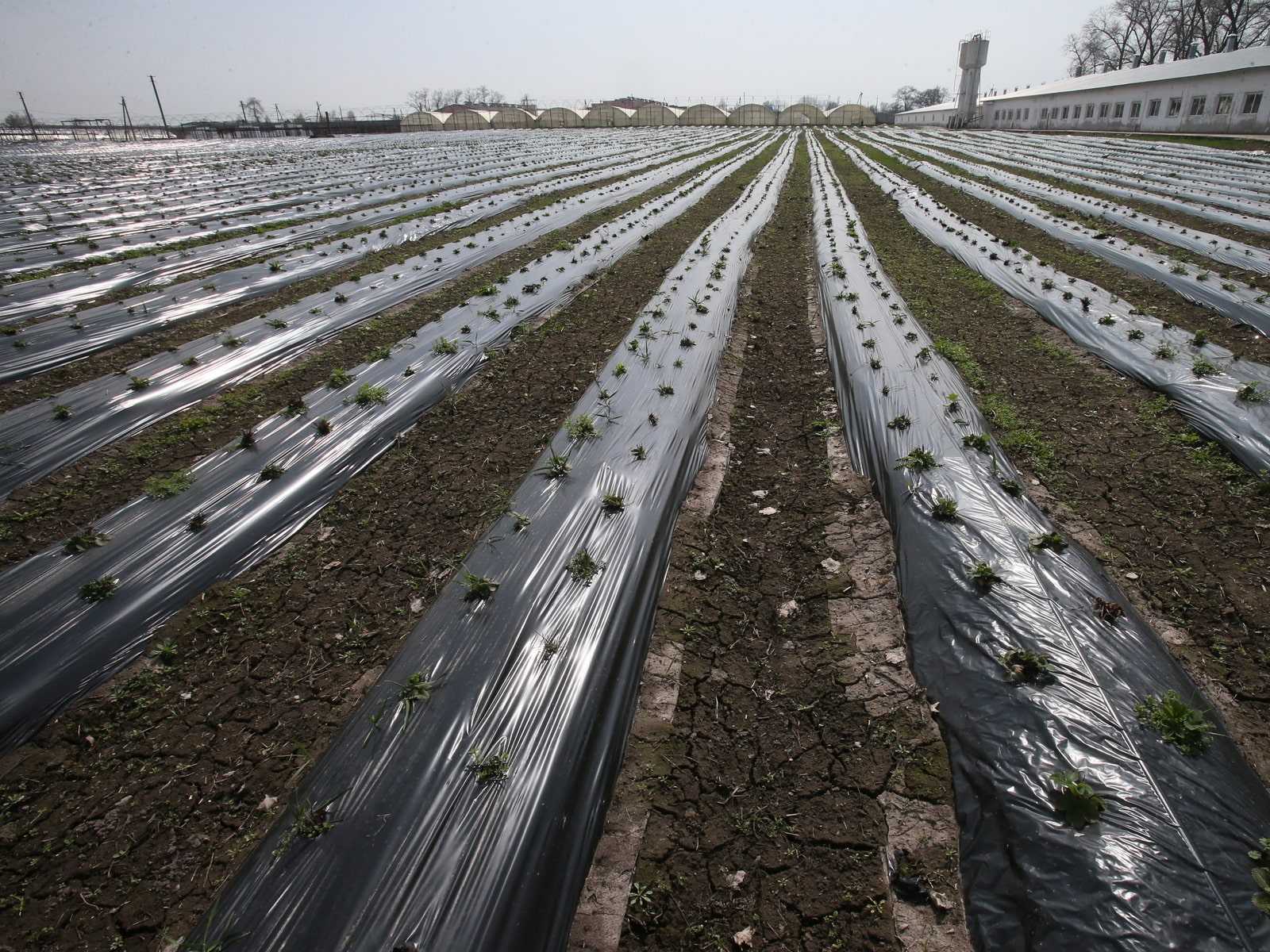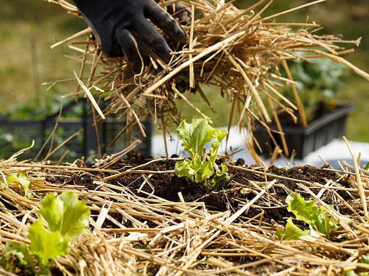 - Мульчирующий материал раскладывается на поверхности обработанной земли, на которой выращиваются овощи;