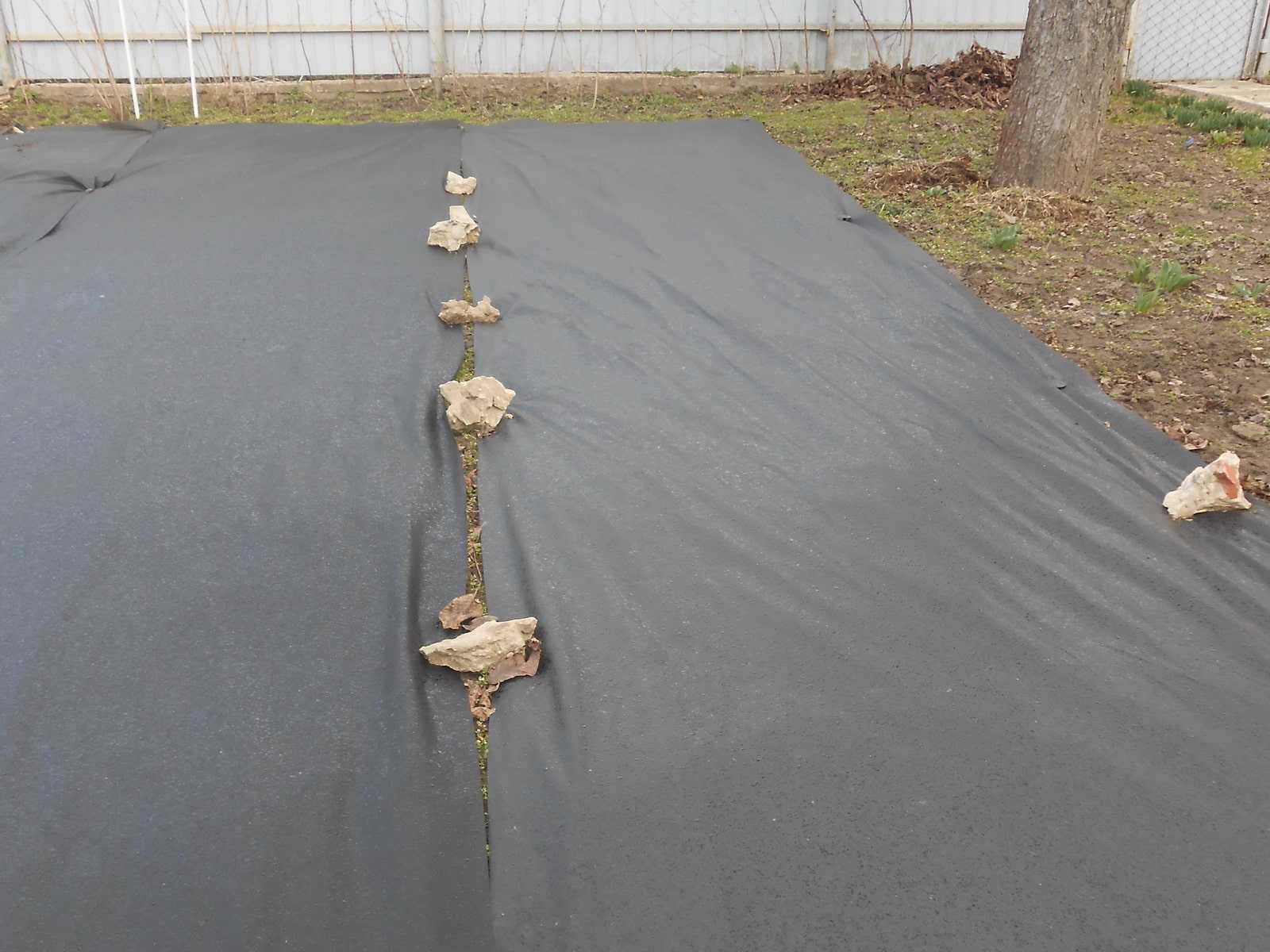 Полотно расстилают заранее на всей площади грядок. При посадке нужно сделать крестовидные надрезы для формирования лунок. Когда растения высажены, края возвращают на место.