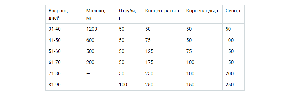 Таблица изменения кормления козлят от 1-го месяца до 3-го
