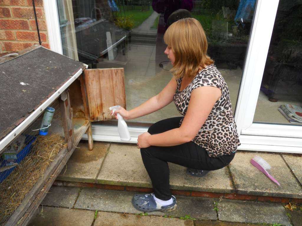 Если вы проводите дезинфекцию инвентаря, поилок, клеток, используйте 20% раствор. Залейте вещество в пульверизатор и равномерно распылите по всем поверхностям. После обработки дайте помещению, где живут животные, их кормушкам проветриться минимум 30 минут.