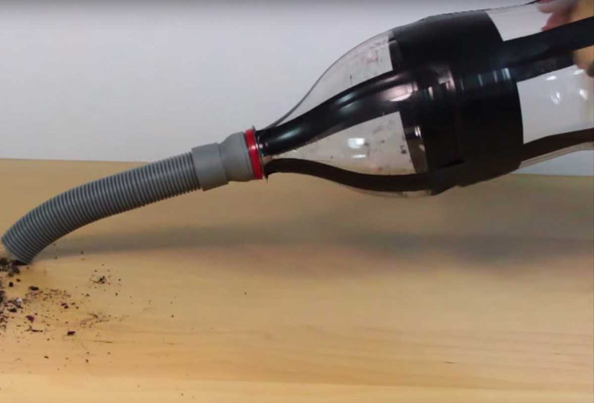 Потребуется гофрированный шланг от старого пылесоса, пластиковая пивная бутылка с длинным горлышком. Его нужно обрезать так, чтобы остался кусок для состыковки с гофрой. В нижней части баллона вырезать окно, в котором нижний край оформить зубчиками.
