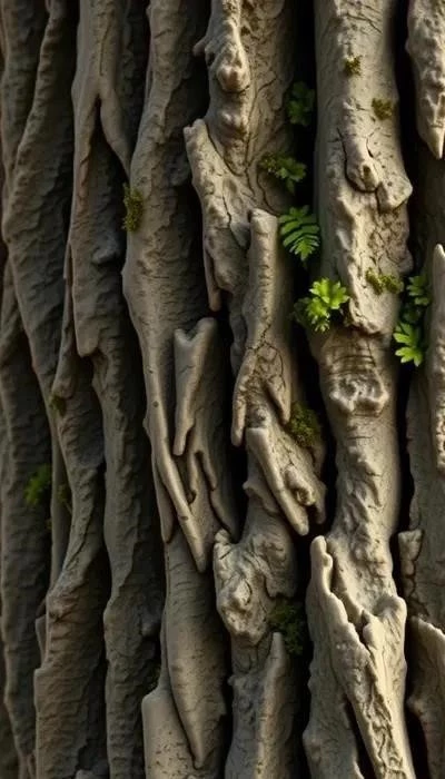 - Трещиноватая кора: Покрыта глубокими трещинами, как у дуба или сосны.