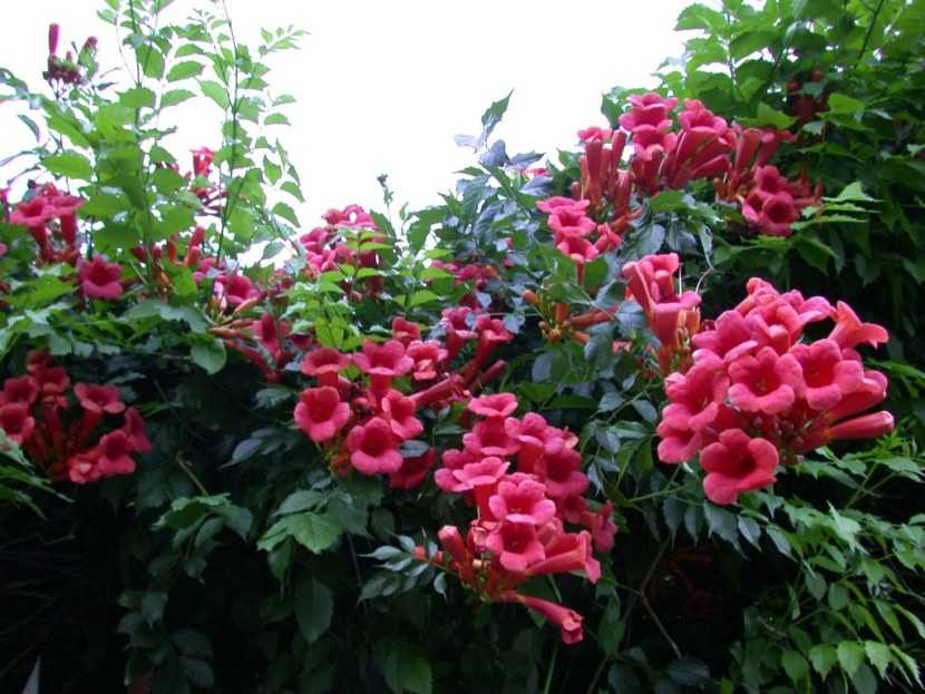 Существует еще и гибридный вид, который классифицирую отдельно. Это кампсис таглиабуанский. Высокорослое растение, достигающее 6 м в высоту. Характеризуется мощным ростом побегов. При разрастании образует пышный куст.