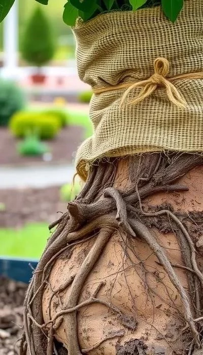 - Транспортировка: Оберните корневой ком влажной мешковиной или пленкой, чтобы предотвратить высыхание. Транспортируйте дерево на телеге или специальном транспорте, избегая повреждений.