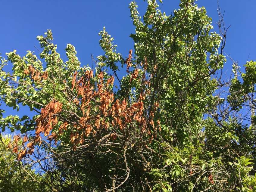 - Ошибки в уходе. Следить за подкормками, не вносить слишком много азота, так как из-за этого цветение ухудшается. Обрезать правильно, не убирать за один раз слишком много и не срезать молодые побеги, на которых появляется основная часть цветов. Делать работу вовремя, если температура слишком низкая, срезы подмерзнут, когда высокая – будет сильное камедетечение, растение будет долго устранять последствия обрезки.