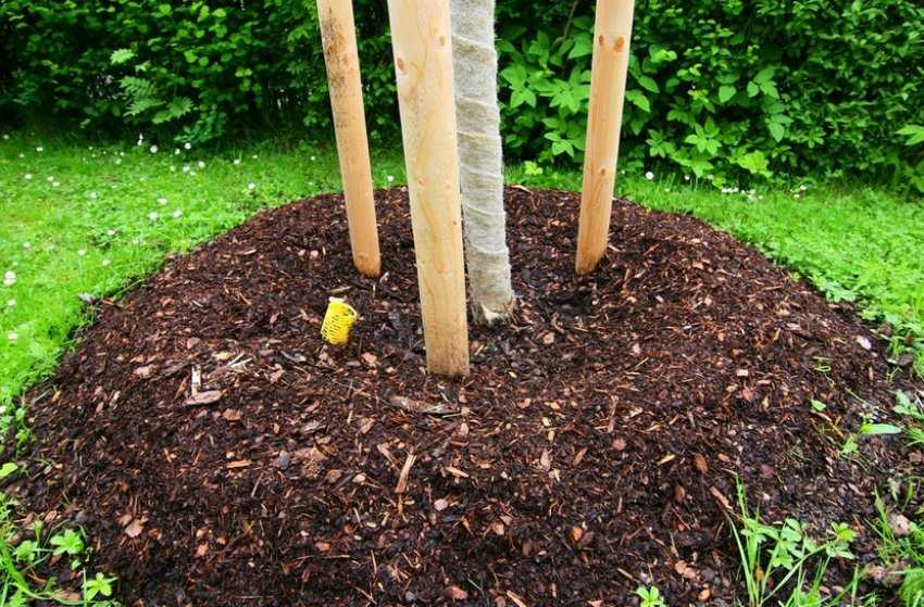 Также хорошо после поливов приствольную зону покрывать мульчей слоем в 10 см для того, чтобы сохранить влагу и сдержать рост сорных трав.
