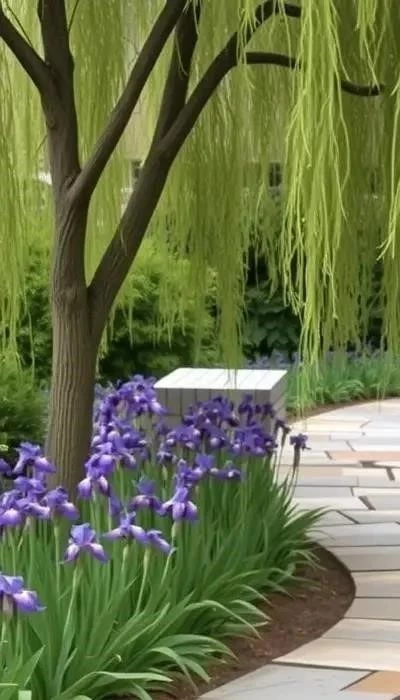 Плакучие ивы – это классика стиля модерн. Их изящные ветви, склоняющиеся к земле, создают романтическую атмосферу. Ивы любят влагу, поэтому их лучше всего сажать вблизи водоемов. Плюсы: декоративность, быстрорастущий. Минусы: требовательность к влаге, хрупкость ветвей.