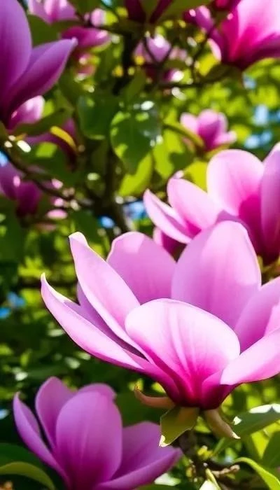 - Магнолия: Крупные, эффектные цветы различных оттенков (белые, розовые, лиловые). Требует укрытия на зиму в холодных регионах.