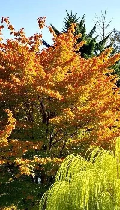 - Клен татарский (Acer tataricum): Быстрорастущее дерево с яркой осенней окраской.