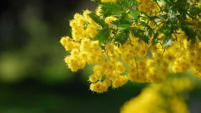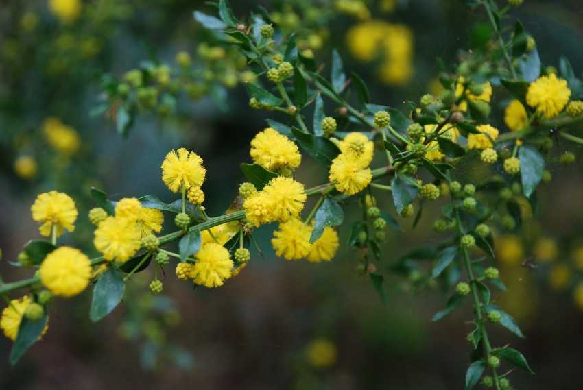 - Серебристая — дерево около 12 м высотой; цветущие ветки именно таких растений в народе известны как «мимоза» и часто служат подарком к весенним праздникам.
